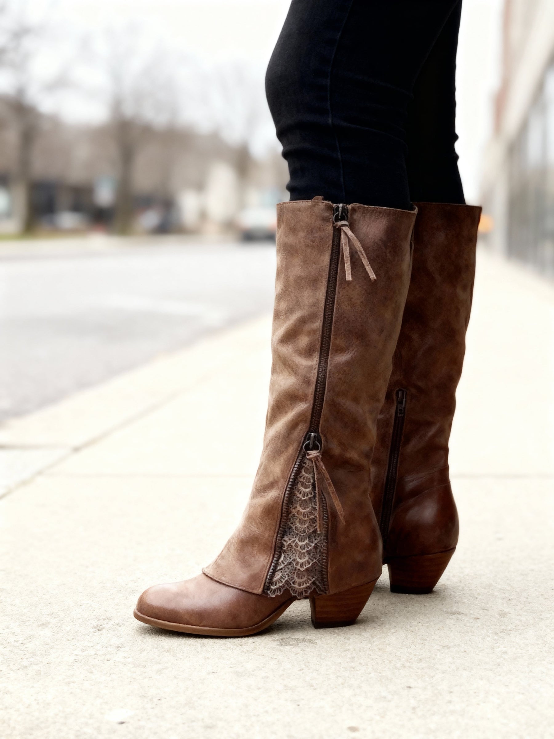 Embrace western-inspired style with a feminine twist with the Evie boots. These boots combine delicate lace detailing with a classic western silhouette, offering both elegance and everyday comfort. Perfect for pairing with jeans, skirts, or dresses, they bring effortless sophistication to any outfit while keeping your feet supported all day long.